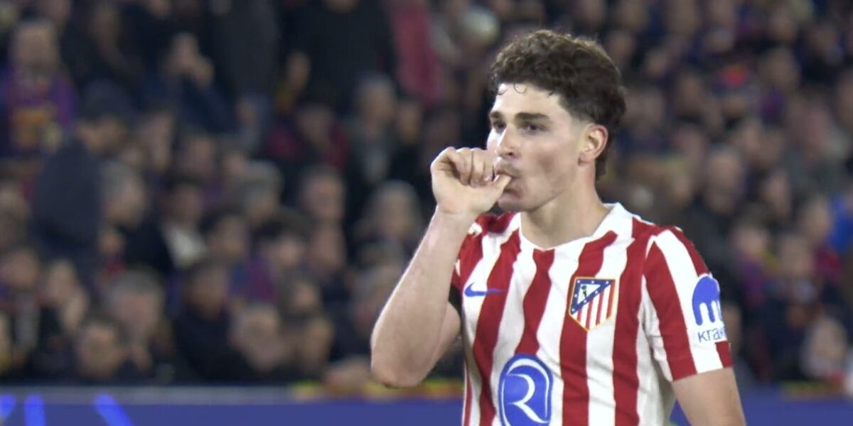 Në minutën e 42-të, Barcelona mbetet me 10 lojtarë. Pas ndërhyrjes së VAR, Pau Cubarsi largohet me karton të kuq për faullin si lojtar i fundit nga Giuliano Simeone. Goditje dënimi për Atletico Madridin, Julian Alvarez e ekzekuton në mënyrë perfekte dhe topi shkon në rrjetë.