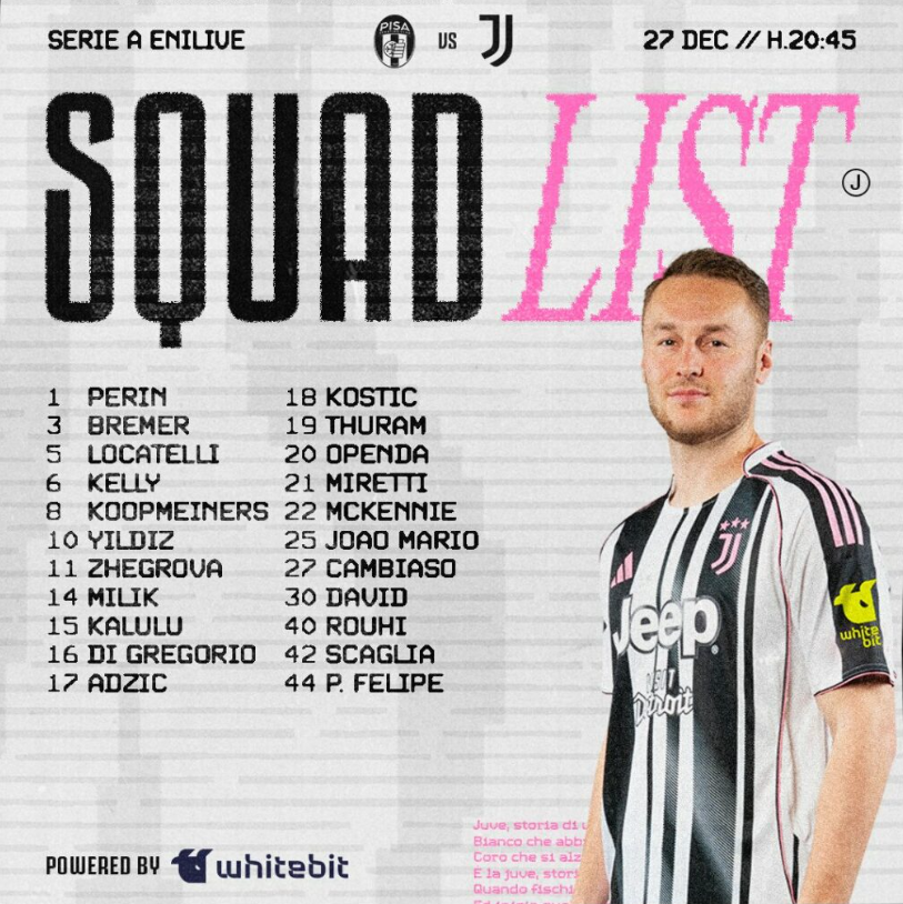 Juventusi sonte do të luaj si mysafire e Pisas, ndeshje e vlefshme për javën e 17-të të Serie A.