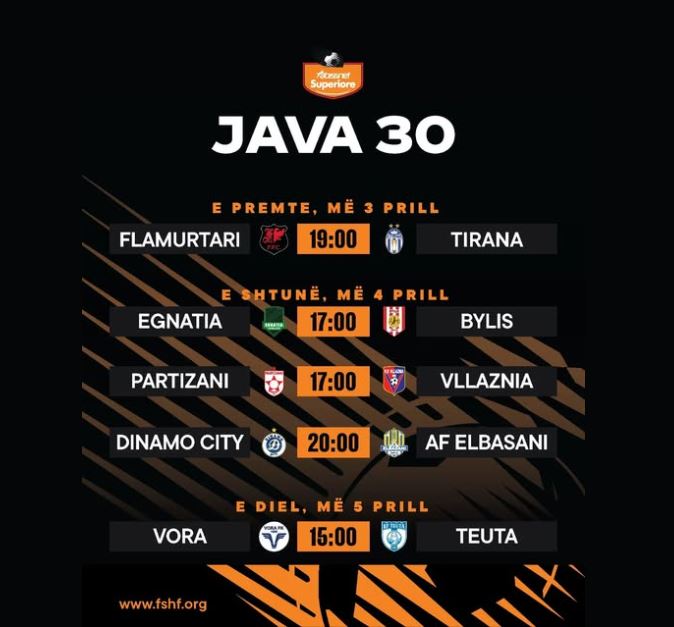 Kombëtarja ia lë vendin kampionatit. Abissnet Superiore rikthehet me javën e 30-të, që do të luhet e ndarë në tri ditë, duke filluar nga e premtja.
