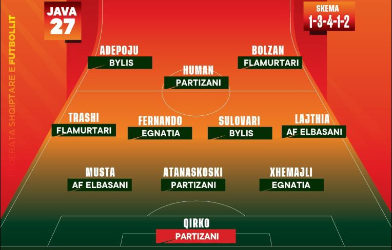 Në rolin e fantazistit është përzgjedhur Rowan Human (Partizani). Dy sulmuesit e formacionit më të mirë të javës janë Ahmed Adepoju (Bylis) dhe Alessandro Bolzan (Flamurtari).