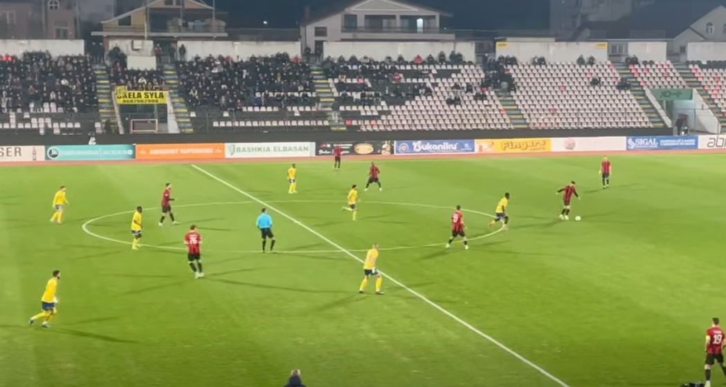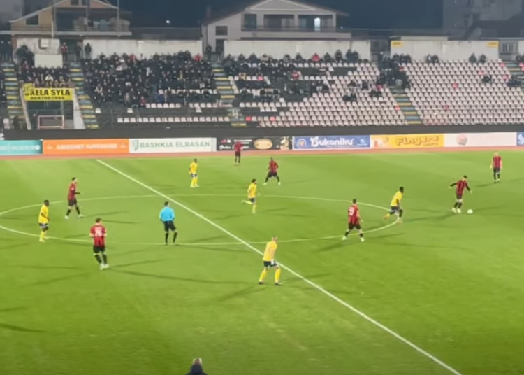 Elbasani është më kërkues në pjesën e parë, madje flirton disa herë me golin, por nuk arrin që të shënojë golin e avantazhit. Në fundin e pjesës së parë shënon Tsague, por goli anulohet për pozicion jashtë loje.