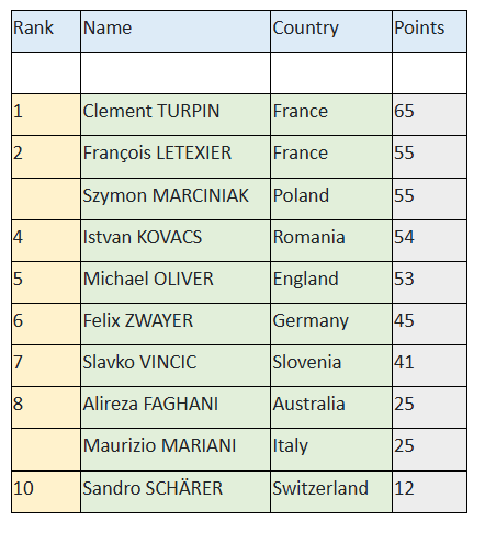 Clement Turpin dha performanca të klasit botëror në garat kontinentale, duke treguar kontroll, qetësi dhe pozicionim të shkëlqyer.