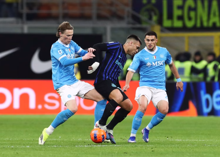 Federico Dimarco zhbllokoi rezultatin në minutën e 9-të, duke kaluar Interin në epërsi por Napoli reagoi me anë të mesfushorit Scott McTominay që barazoi shifrat në minutën e 26-të.