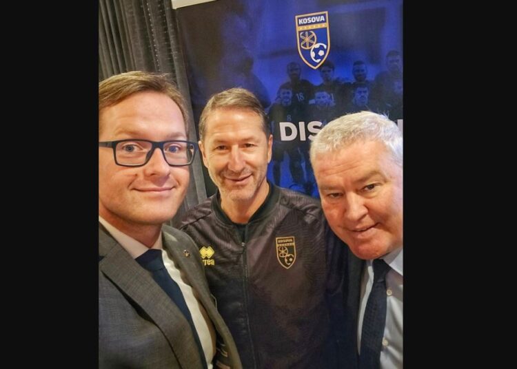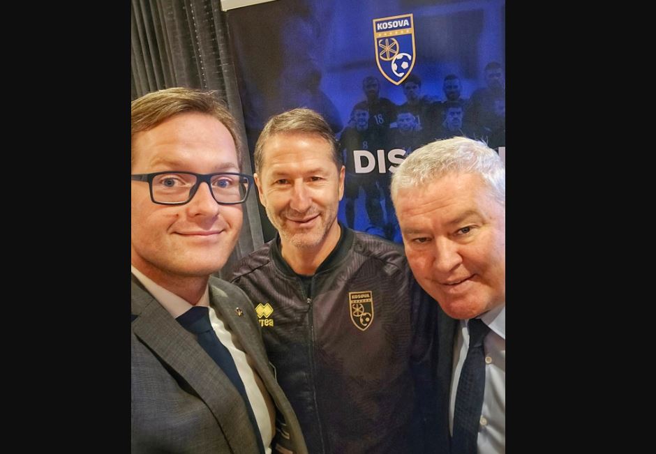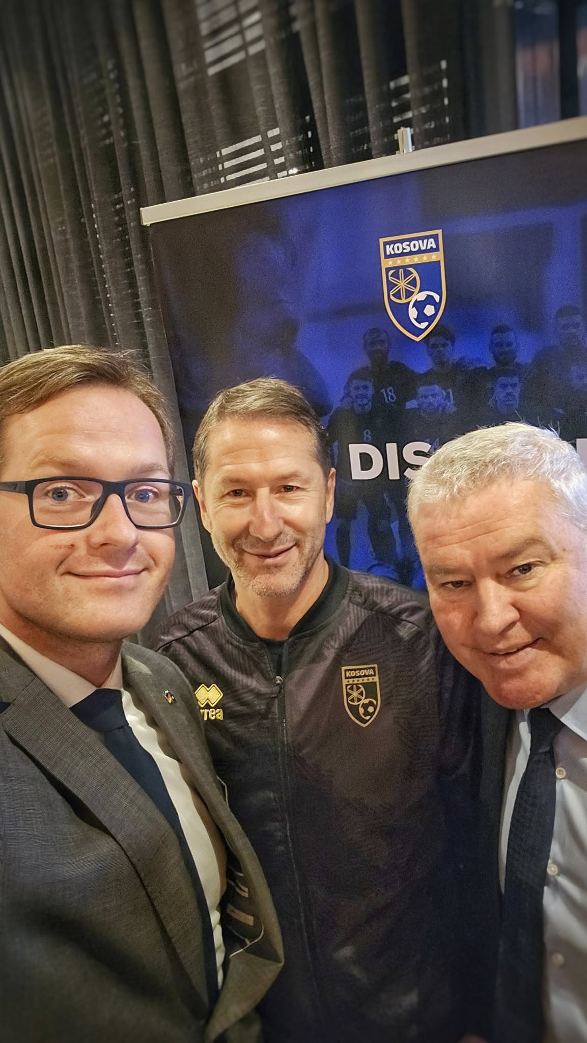 “I urojmë ekipit kombëtar të Kosovës fat të mbarë në ndeshjen e sonte kundër Sllovenisë! I Ngarkuari ynë me Punë, Christian Böttcher, pati kënaqësinë të takohej me trajnerin e ekipit kombëtar, Foda dhe Sekretarin e Përgjithshëm të Federatës së Futbollit të Kosovës, z. Weidner”.