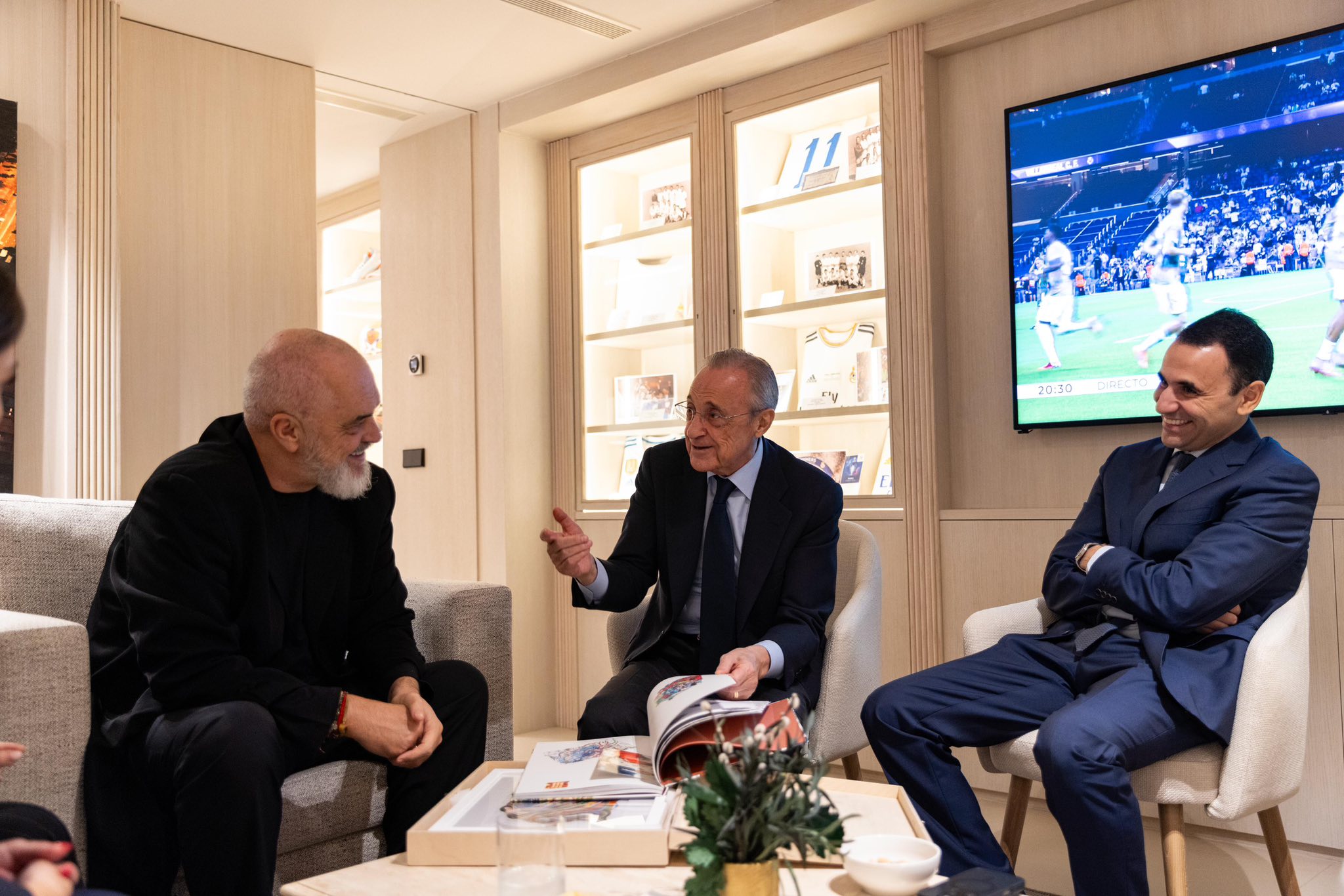 Kryeministri Edi Rama i përjetoi sonte momente të veçanta në “Santiago Bernabéu”, ku u prit me nder nga Florentino Pérez, presidenti legjendar i Real Madridit.