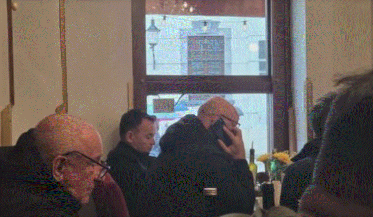 Në fotografi Peci shihet në një lokal me disa miq.