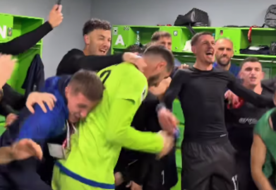 Festa e çmendur e Kosovës në dhomat e zhveshjes pas fitores historike në Slloveni