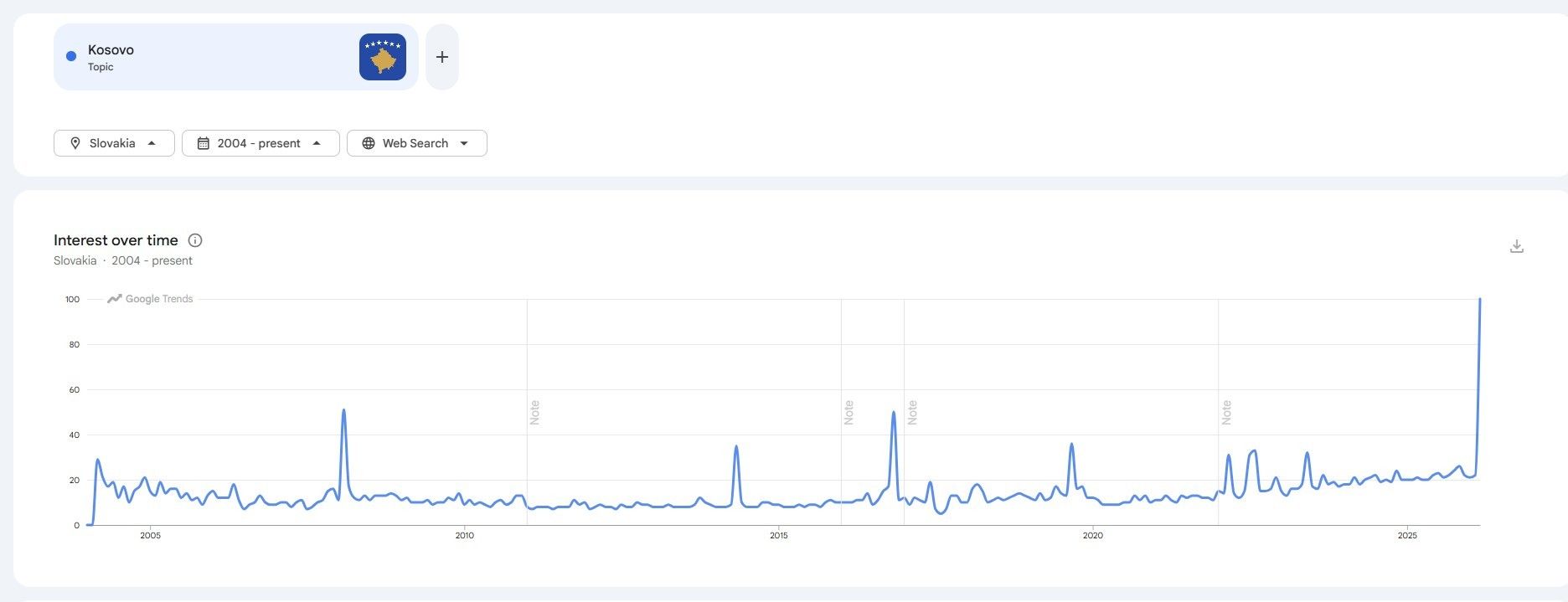 I njëjti trend është vërejtur edhe në Sllovaki, ndonëse jo në të njëjtën shkallë si në Turqi, por që mbetet i konsiderueshëm duke pasur parasysh se bëhet fjalë për një vend që nuk e njeh zyrtarisht pavarësinë e Kosovës.