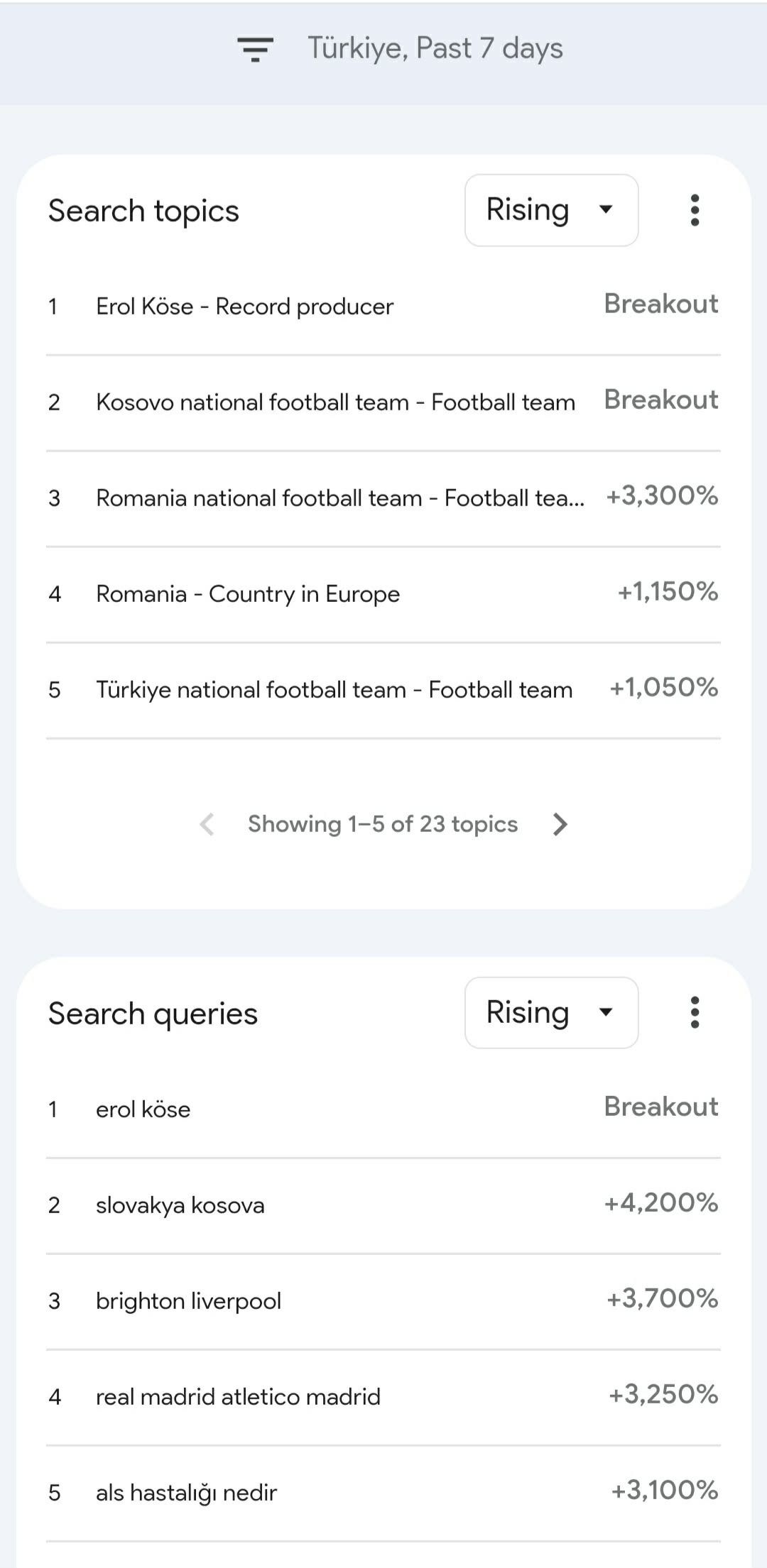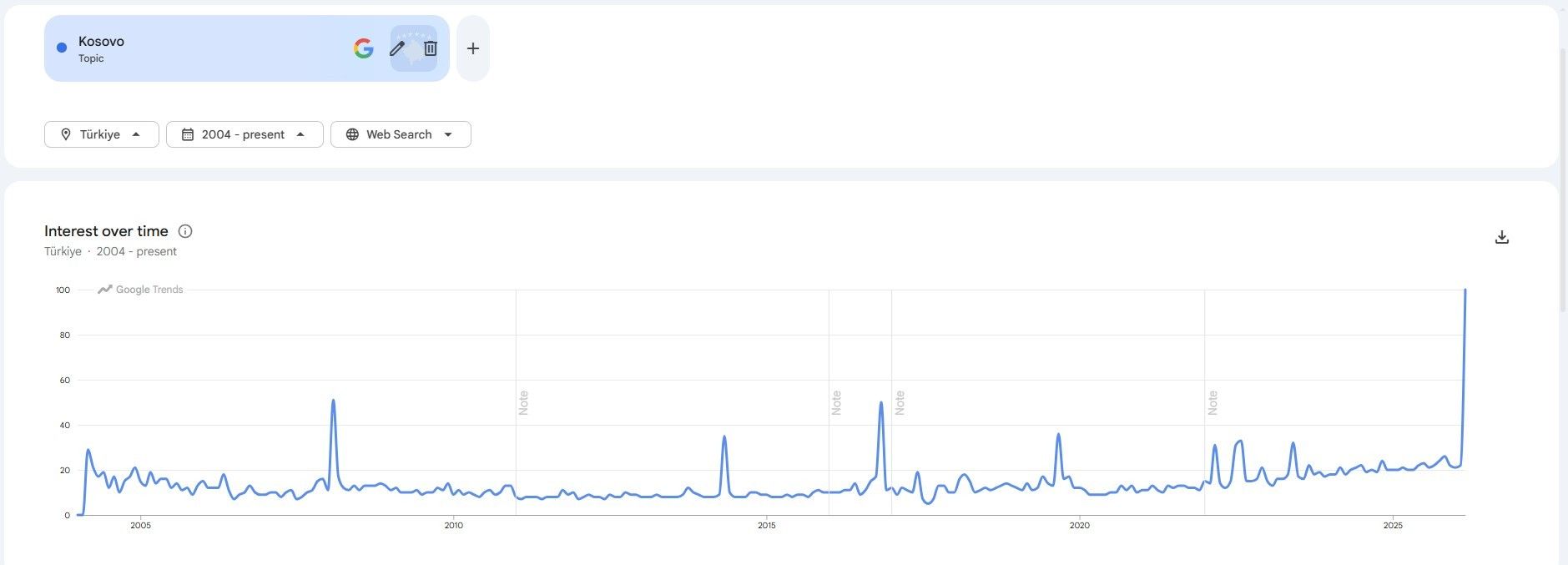 Madje, sipas kërkimeve në shtatë ditët e fundit, Kosova renditet në mesin e dy temave më të kërkuara në Google në Turqi.