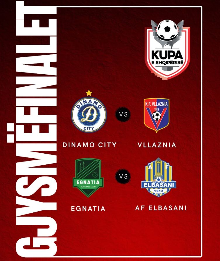 Dinamo City dhe Egnatia-Elbasani janë dy çiftet gjysmëfinaliste të Kupës së Shqipërisë, aktivitet që transmetohet në RTSH. Në ambientet e Shtëpisë së Futbollit është hedhur sot shorti i gjysmëfinaleve dhe goglat kanë përcaktuar pikërisht këto dy përballje.
