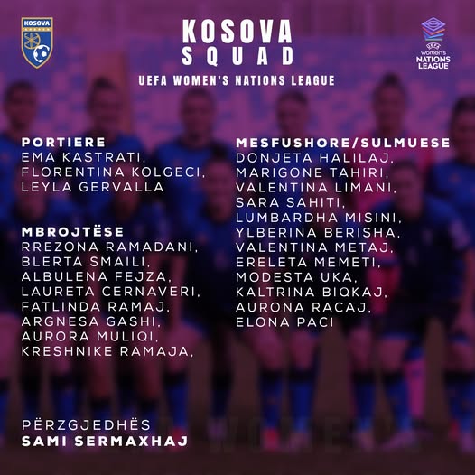 Selektori Sami Sermaxhaj ka ftuar 23 futbolliste për këtë grumbullim,ku synon që nga këto dy përballje të marrë fitore për të mbetur në Ligën B.