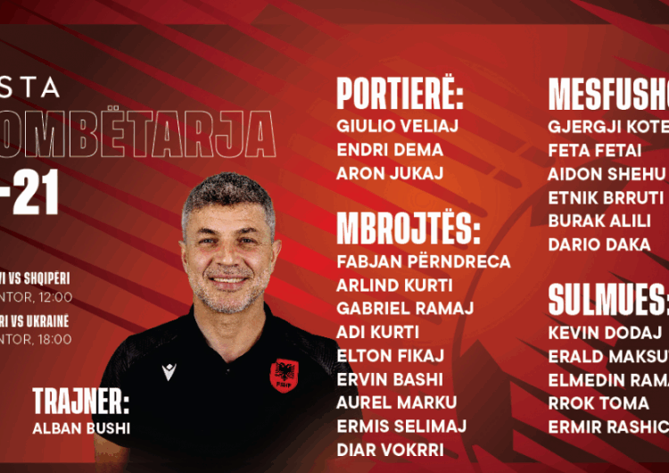 Trajneri Alban Bushi ka publikuar listën me 23 lojtarët e grumbulluar, ku risia e vetme është futbollisti i Ballkanit, Diar Vokrri.