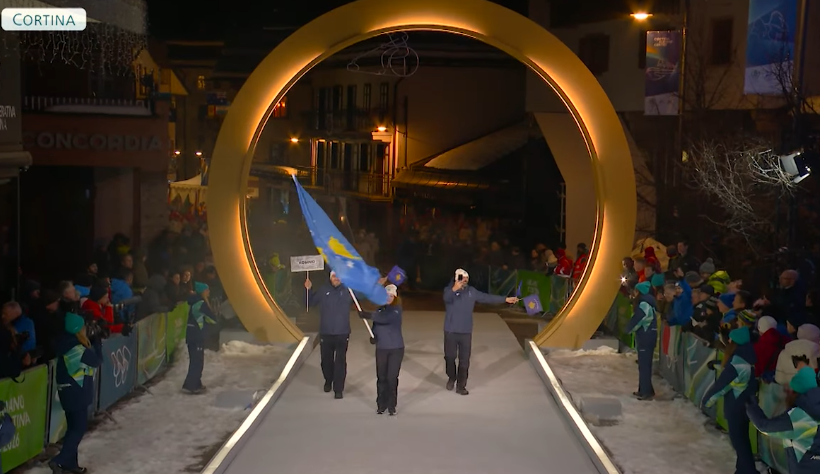 Flamuri i Kosovës u valëvit krenar në Cortina dhe Livigno gjatë parakalimit të delegacionit kosovar në ceremoninë madhështore të hapjes së Lojërave Olimpike Dimërore.
