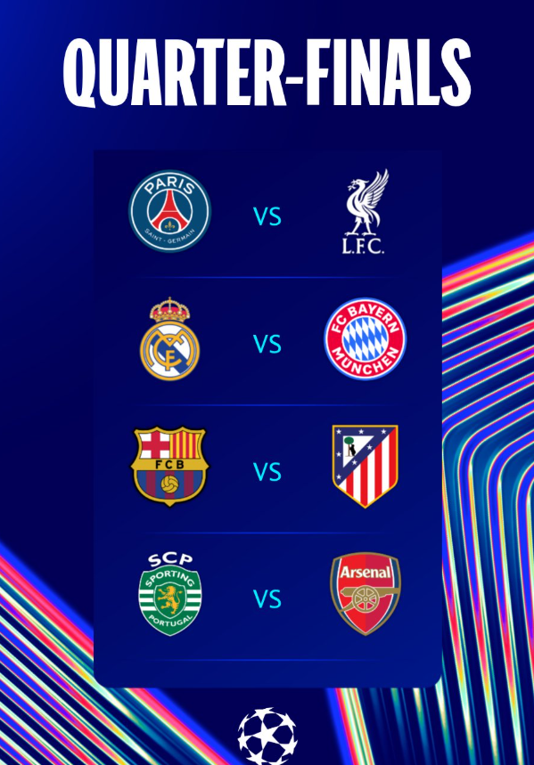 Ndërsa gara arrin në fazën çerekfinale, Arsenali është bërë favorit për të fituar Ligën e Kampionëve për herë të parë në historinë e klubit. “Topçinjtë” do të përballen me një tjetër ekip jo-favorit në çerekfinale, Sportingun e Lisbonës, që është kualifikuar mes tetë më të mirëve të turneut për herë të parë që nga viti 1983.