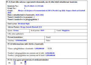 Në këtë kuadër, Telekomi i Kosovës ka njoftuar se ka përfunduar procedurat për nënshkrimin e kontratës për blerjen e të drejtave të transmetimit të Kupës së Botës në Futboll 2026. Sipas njoftimit zyrtar, kontrata ka për qëllim sigurimin e të drejtave ekskluzive të transmetimit të ndeshjeve në platformën televizive.