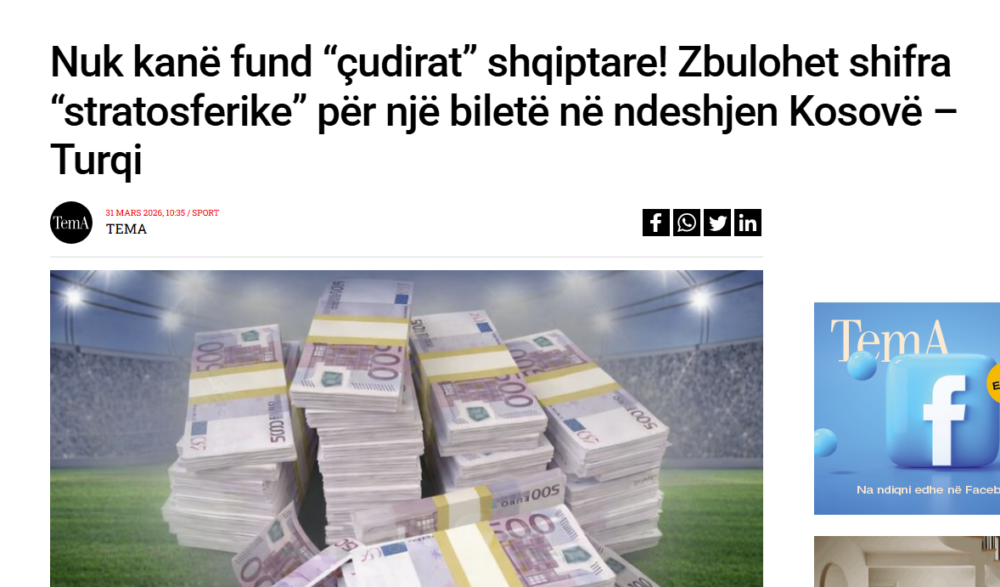 Gazeta Tema shkruan se një çmim i tillë i biletave s’është dëgjuar më herët ne Evropë e më gjerë.