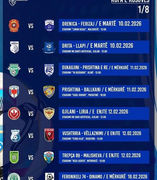 Kjo mesajavë pritet të sjellë ndeshjet e 1/8së finales në Kupën e Kosovës në futboll,ku pritet të ketë ndeshje tejet interesante.