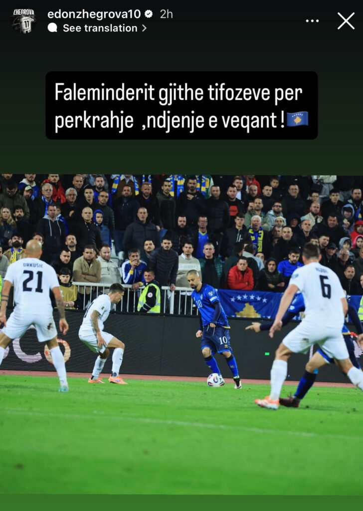 ”Faleminderit gjithë tifozëve për përkrahje, ndjenjë e veqant!”, ka shkruar Zhegrova.