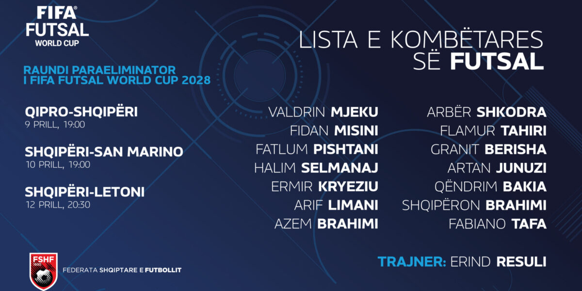Kombëtarja e futsallit do të nisë rrugëtimin në para-eliminatoret e Kampionatit Botëror 2028, ku do të përballet me Qipron, Letoninë dhe San Marinon në datat 9, 10 dhe 12 prill.