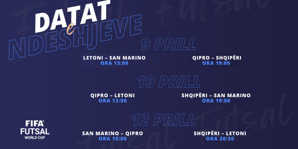 Kombëtarja shqiptare e futsallit do të nisë të enjten rrugëtimin në raundin paraeliminator të Grupit E të FIFA Futsal World Cup 2028, ku do të përballet me Qipron, Letoninë dhe San Marinon. Të gjitha ndeshjet e këtij grupi do të zhvillohen në Parkun Olimpik të Tiranës, nën organizimin e Federatës Shqiptare të Futbollit.