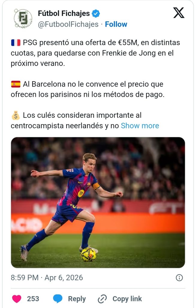 Frenkie De Jong është përsëri protagonist në mjedisin e Barcelonës, jo vetëm për shkak të rikthimit të tij pas lëndimit, por edhe për shkak të interesit të Paris Saint-Germain