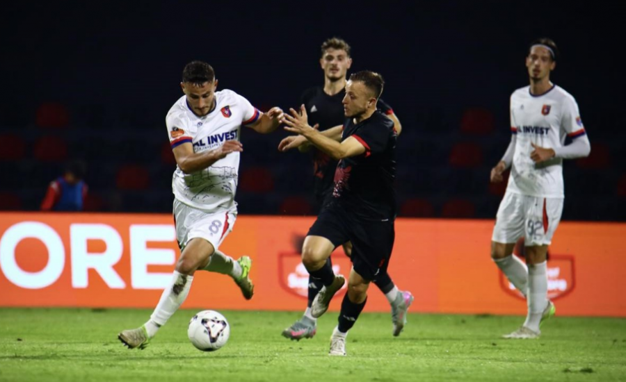 Alessandro Albanese (Egnatia) dhe Dejvi Bregu (Dinamo City) mbështesin sulmuesin e AF Elbasanit, Blaise Tsague, në majën e sulmit.