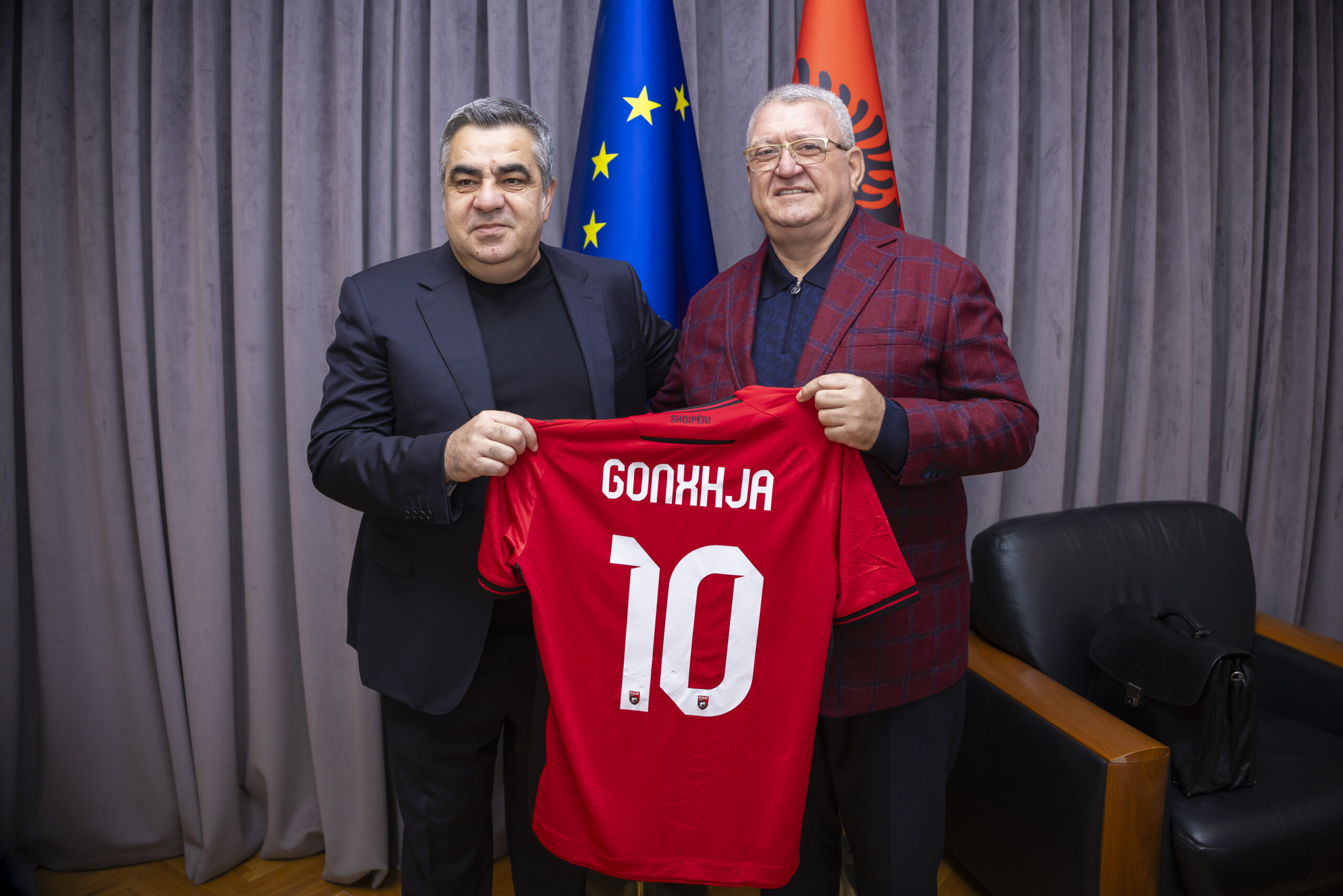 Presidenti Duka e uroi Ministrin Gonxhja për detyrën e re dhe i shprehu gatishmërinë e FSHF-së për të bashkëpunuar ngushtë me institucionin e tij në funksion të zhvillimit të mëtejshëm të futbollit në vend.