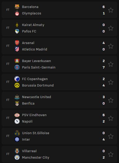 Arsenali mbajti ritmin duke shkatërruar Atlético Madridin 4-0. Dy ekipet e tjera angleze gjithashtu fituan: Manchester City mundi Villarrealin 2-0 dhe Newcastle mundi Benficën 3-0. Borussia Dortmund mundi Copenhagenin 4-2.