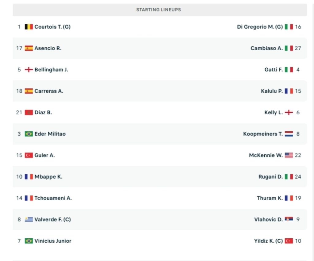 Janë publikuar formacionet zyrtare të ndeshjes mes Real Madridit dhe Juventusit, e vlefshme për xhiron e tretë të fazës së ligës në Ligën e Kampionëve.