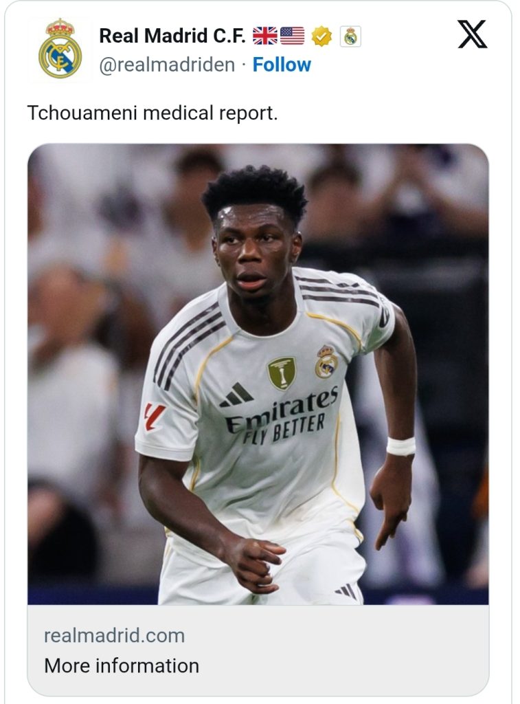 Është vet klubi mbretëror që ka njoftuar rreth lëndimit të Tchouamenit.