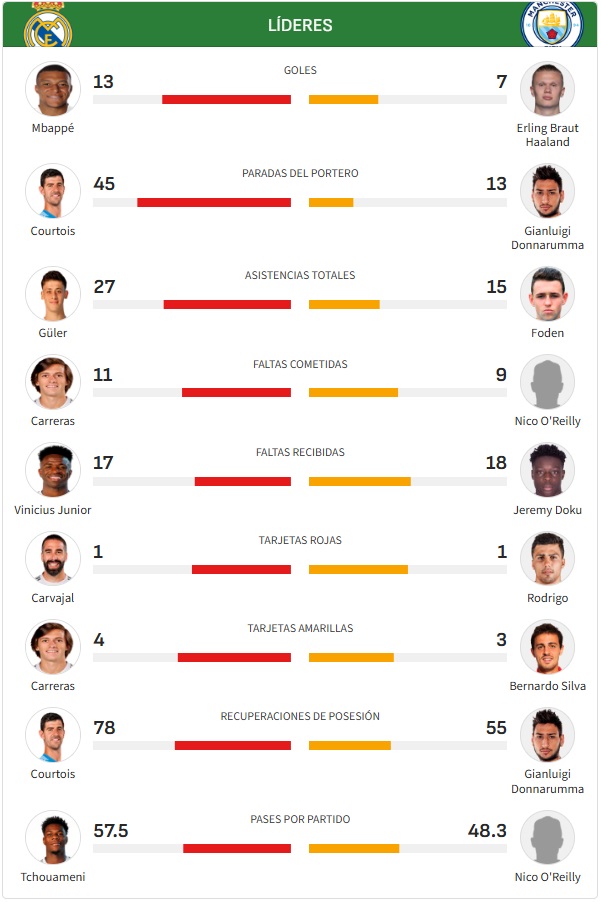 Gjatë rrugës, gëzime dhe hidhërime, sipas asaj se ku pyesni. Data historike, si golat e Rodrygo më 2022 drejt Champions-it të 14-të. Hakmarrja “citizen” e vitit 2023 (4-0 në “Etihad”, pas 1-1 të ndeshjes së parë, në gjysmëfinale). “Play off”-i 2025, me Mbappé yll (4 gola në 2 ndeshje), apo ai ushtrim i reziliencës pa krahasim 2024, kur Real Madridi pa City të fitonte gjithçka, përveç golave (1-1 në Manchester; 3-3 në ndeshjen e parë) dhe penalltive (3-4). Ndeshje e pamundur, që Ancelotti e përmblodhi kështu: “Real Madridi nuk vdes kurrë”.