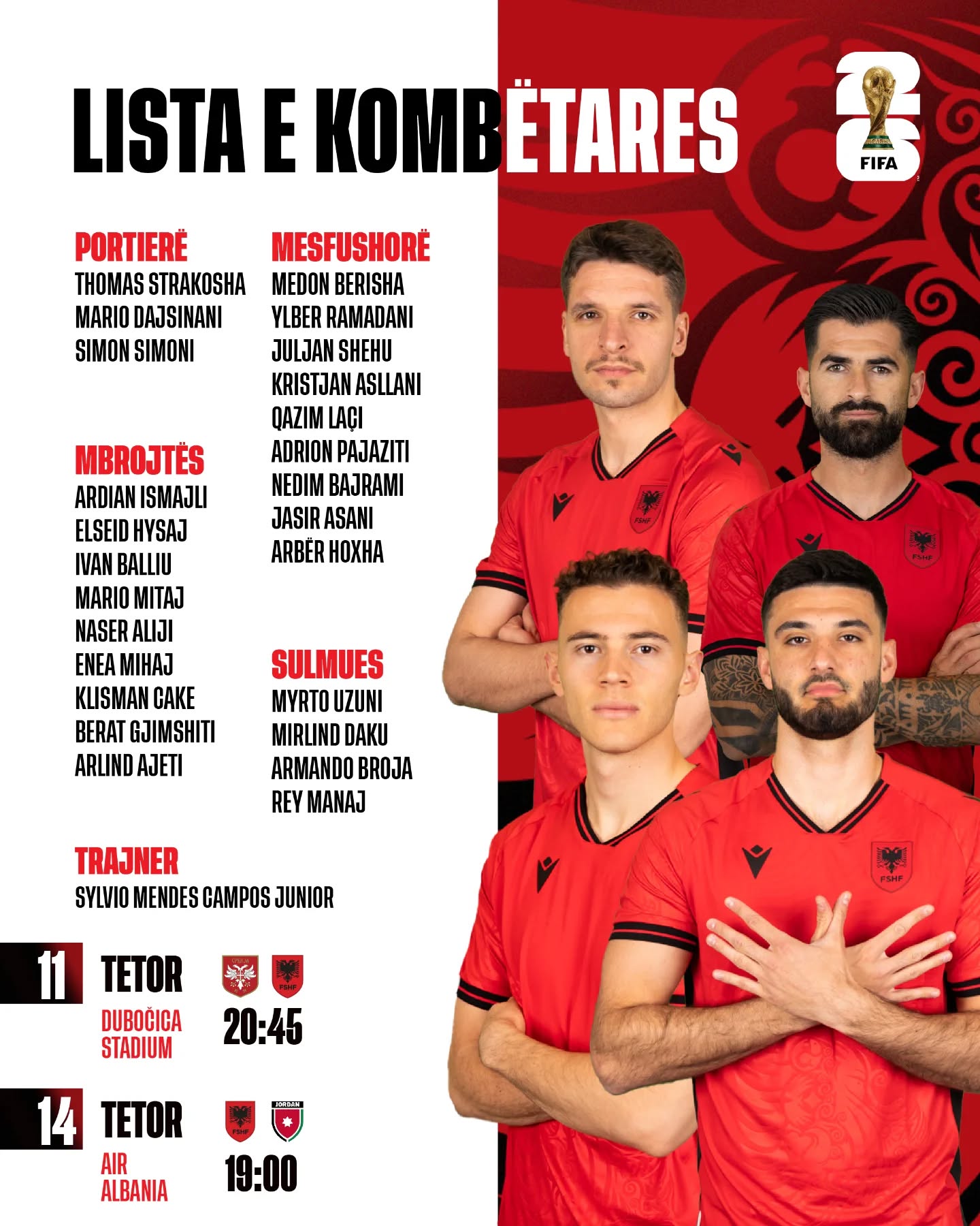Kombëtarja e Shqipërisë ka publikuar listën e futbollistëve të ftuar për ndeshjen kundër Serbisë dhe Jordanisë.