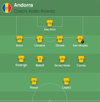 28’ – Andorra rrezikon portën kuqezi, Rodrigo godet nga distanca, topi përfundon jashtë.