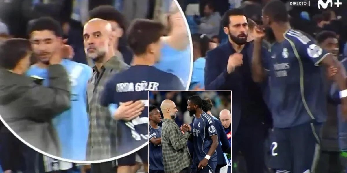 Guardiola cumprimentou todos os jogadores do Real Madrid de forma amigável até se deparar com Rüdiger.
