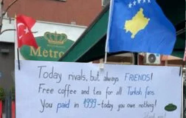 “Sot rivalë, por gjithmonë miq”… Lokali në Prishtinë ofron kafe dhe çaj falas për tifozët turq