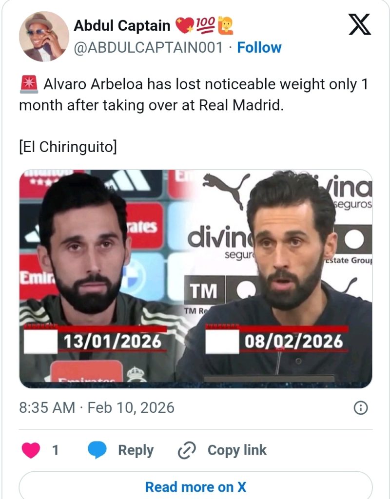 El Chingruito spanjolle raportoi se Arbeloa ka humbur shumë peshë, gjë që mund të shihet edhe në fytyrën e tij, e cila ka ndryshuar ndjeshëm.