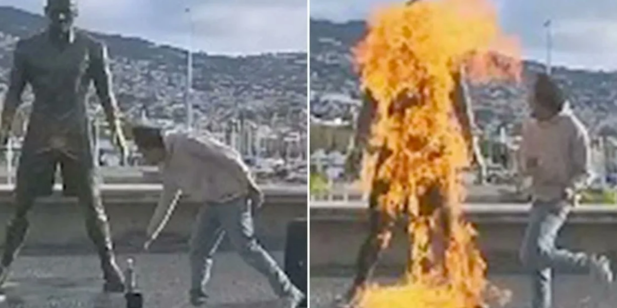 Incidenti ndodhi në Funchal në ishullin e Madeirës, dhe videoja e postuar në rrjetet sociale tregon një të ri që lyen me benzinë një statujë prej bronzi të Ronaldos dhe më pas e ndez atë me një çakmak.