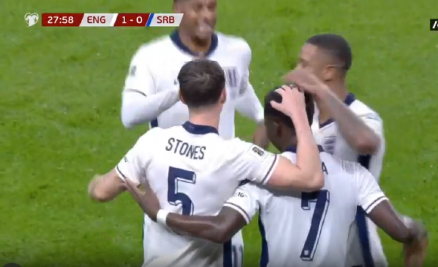 Zhbllokohet në minutën e 28-të ndeshja e Wembley-t mes Anglisë dhe Serbisë. Në zhvillimet e një goditjeje të lirë, topi mbetet në zonë për sulmuesin e Arsenalit, Saka, që nuk fal, 1-0.