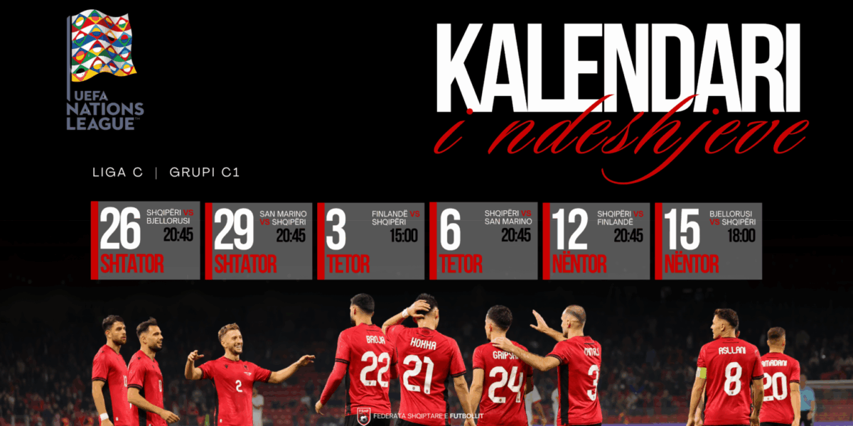 UEFA ka zyrtarizuar sot edhe kalendarin e ndeshjeve. Shqipëria do ta nisë fushatën më 26 shtator në ora 20:45 në shtëpi ndaj Bjellorusisë. Më 29 shtator, kuqezinjtë udhëtojnë drejt San Marinos, me sfidën e planifikuar të nisë në ora 20:45, ndërsa më 3 tetor do të përballen në transfertë me Finlandën në ora 15:00.